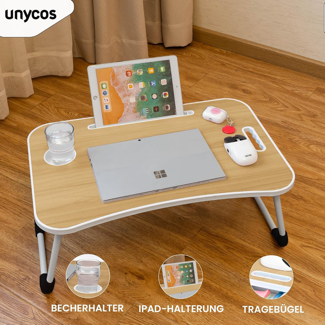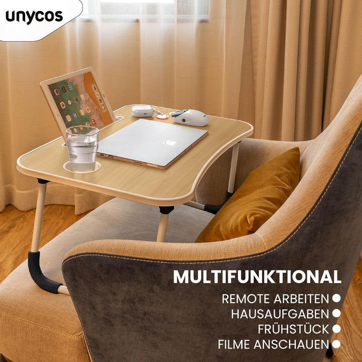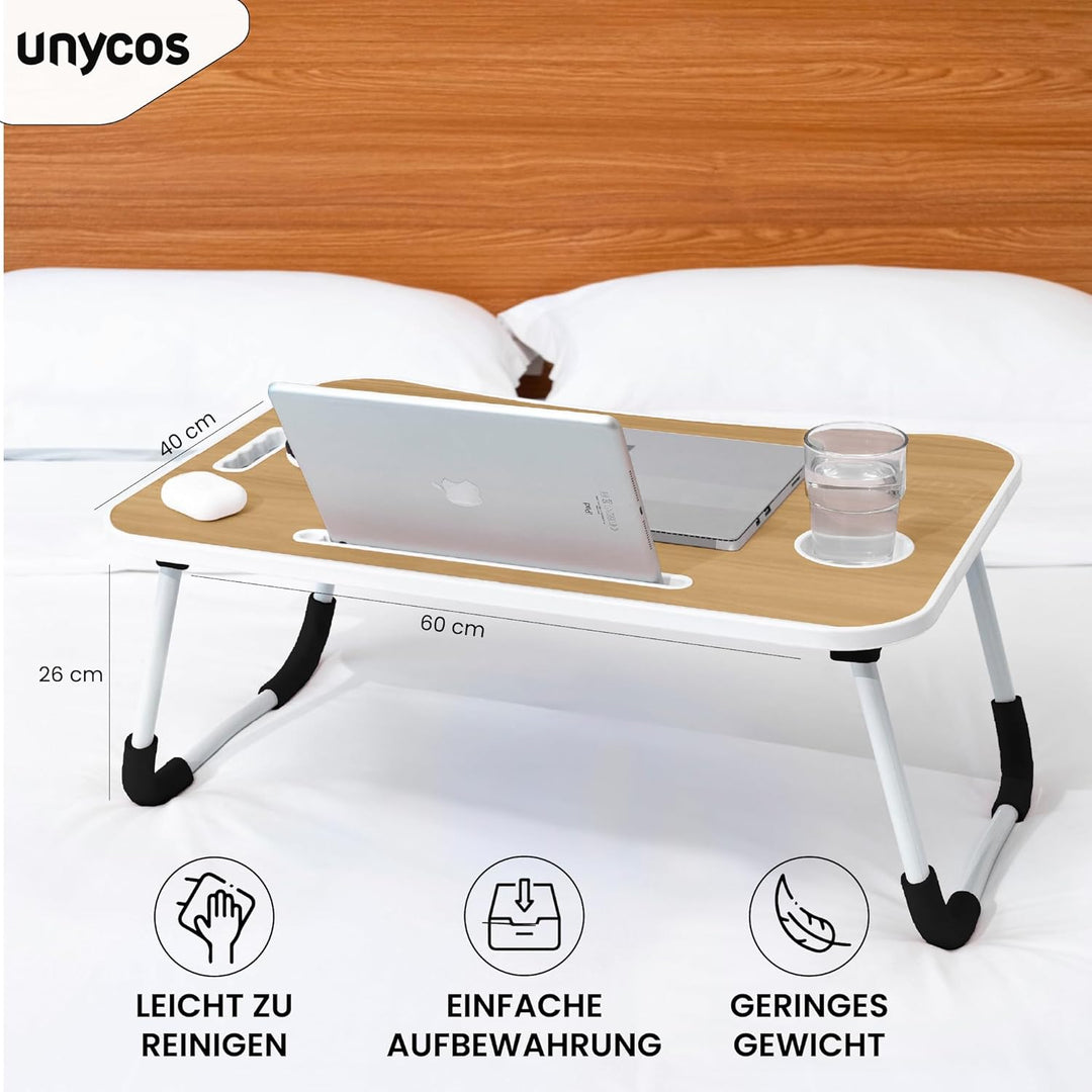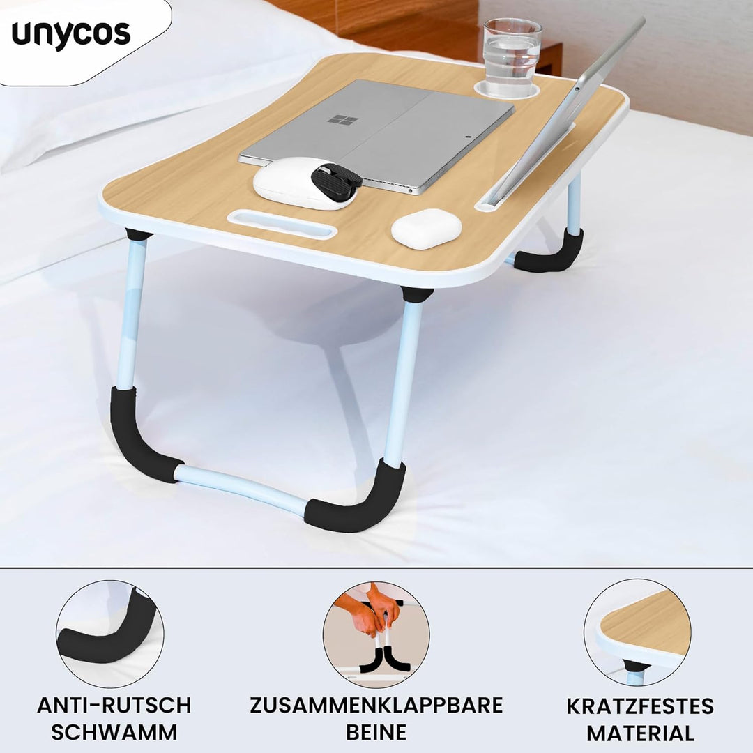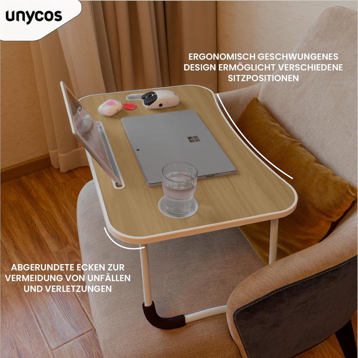 unycos - Klappbarer Laptoptisch, Betttablett, Leseständer, Computertisch, Frühstückstablett, Beistel
