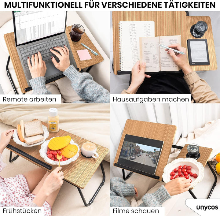 - 💯 {Multifunktional} Der Klapptisch kann an verschiedenen Orten verwendet werden, z. B. im Bett, beim Frühstück oder Snack, auf dem Sofa oder auf einem Tisch. Er ist nützlich zum Arbeiten, Lernen, Lesen, Schreiben, Essen und Spielen.