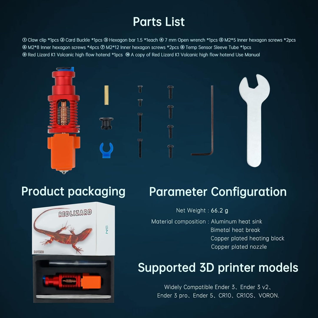 - Upgraded Heatbreak ist ein dreiteiliger, fest verbundener, nicht abnehmbarer integrierter Hitzeschutz, verbunden durch den Fixierblock des Heatbreak und das Gewinde des Heizkörpers und bequeme Demontage, bessere Wärmeleitung und Wärmeableitungseffekt,