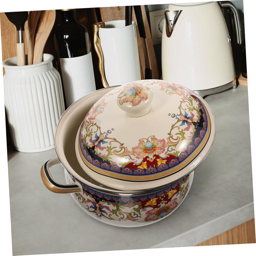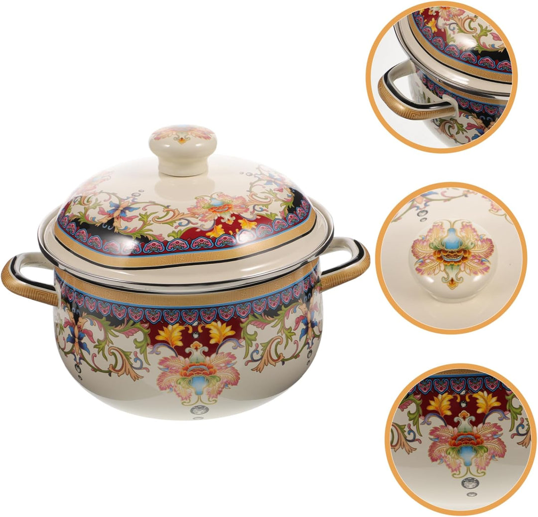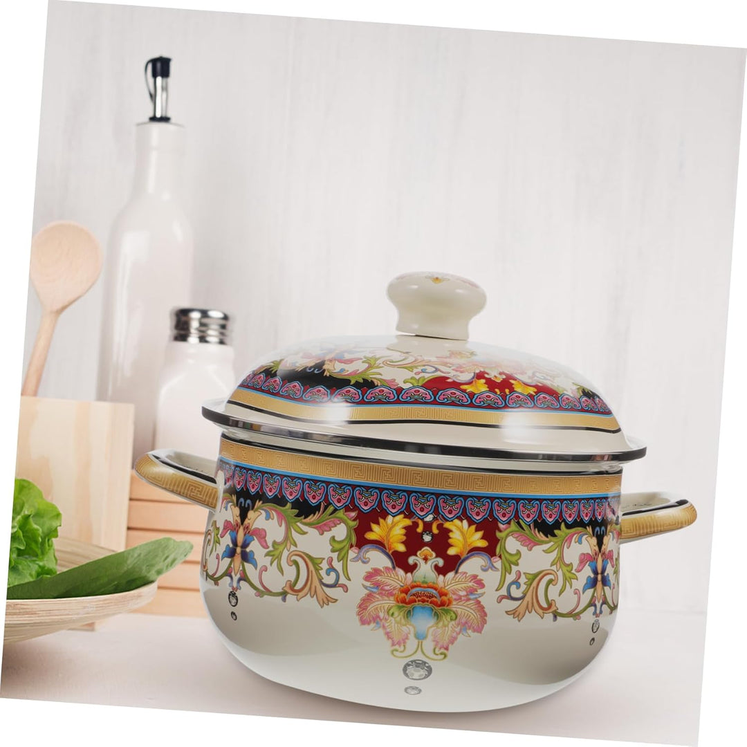 - EMAILLE-Kochtopf – breite Anwendung, der Emaille-Suppentopf eignet sich für Zuhause, Restaurant, Hotel, Camping und so weiter. Vintage Emaille-Suppentopf, traditioneller Kochtopf, Doppelgriff-Eintopftopf, Haushalts-Suppentopf mit Deckel