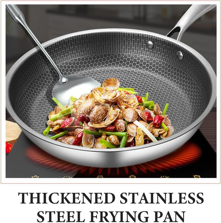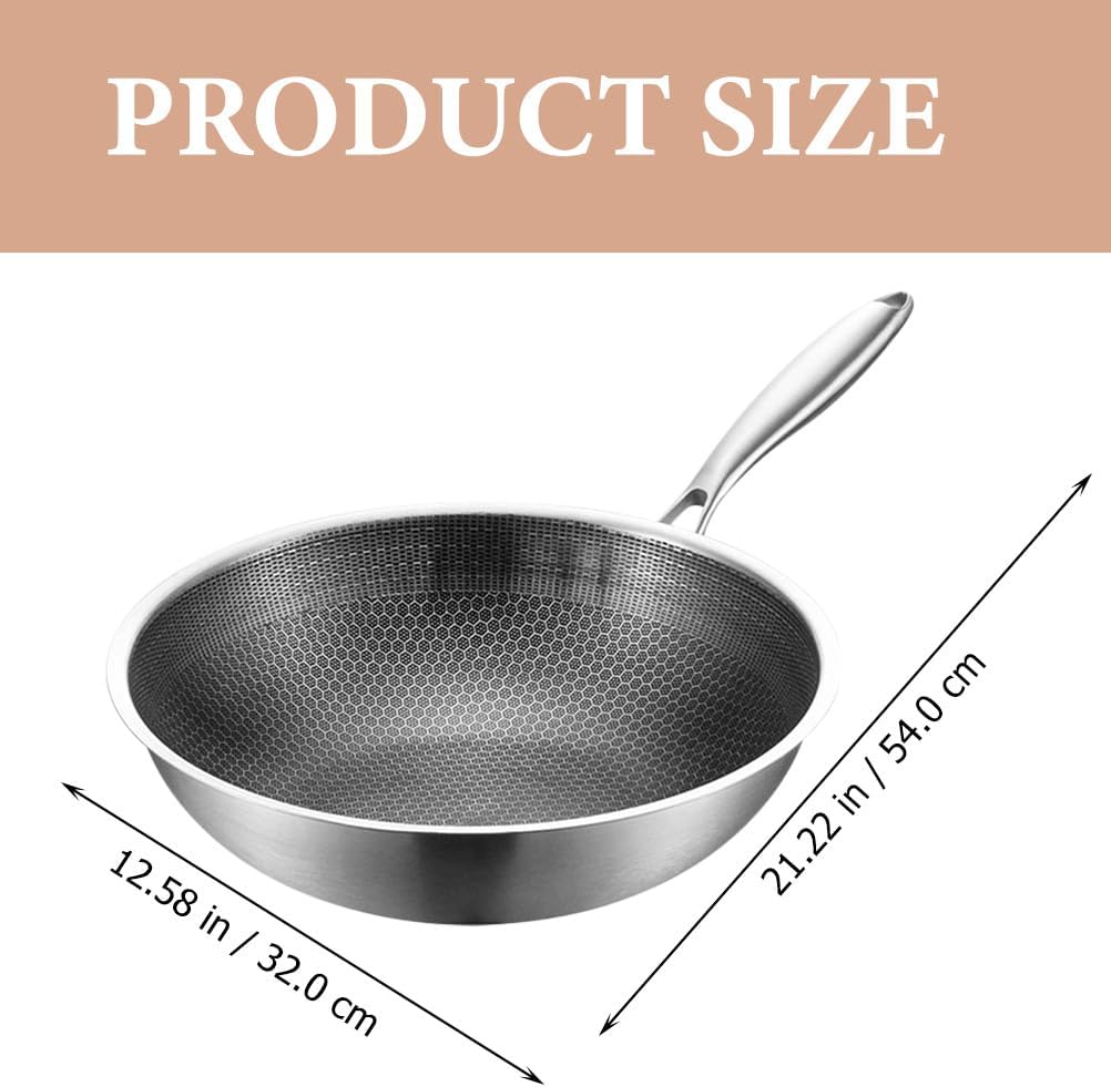 UPKOCH Wokpfanne Edelstahl Wok Rührpfanne 32Cm Hot Pot Antihaft-Eisen Bratpfanne Doppelgriff Chinesi