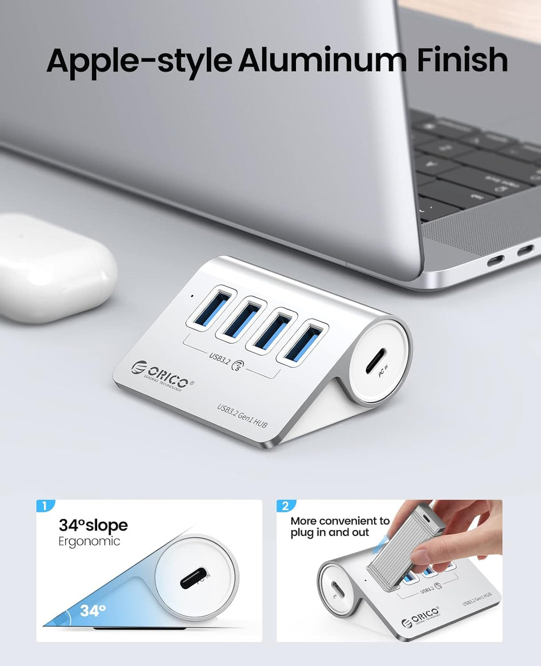- ❤️Alles Aluminium Material: ORICO USB 3.2 Nabenschale mit Vollmetall und Apple Design bietet nicht nur schnelle Wärmeableitung und kratzfest, was eine verlängerte Lebensdauer ermöglicht, sondern auch perfekt zu Ihrem Apple Gerät passt. Aluminium