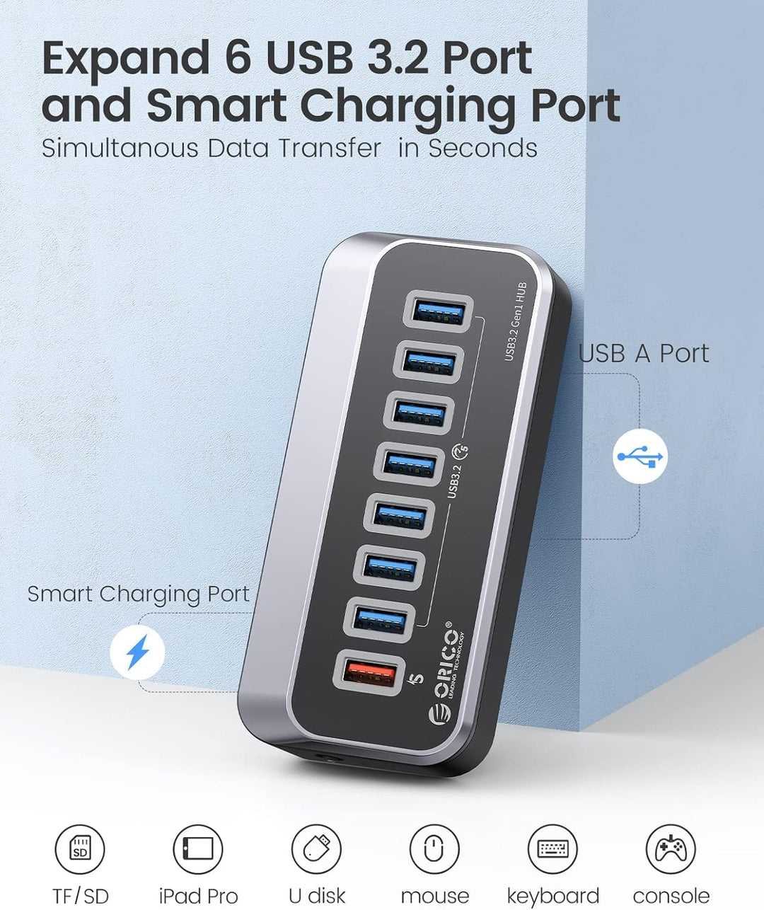 - ❤️Sofortige Erweiterung und SuperSpeed Syncing: 7-Port USB 3.2 Hub kann zusätzliche 7 ports USB 3.2 Datenports für Tastatur, Maus, Drucker, Festplatten und weitere USB-Geräte erweitern und Daten mit unglaublichen Geschwindigkeiten bis zu 5Gbps in