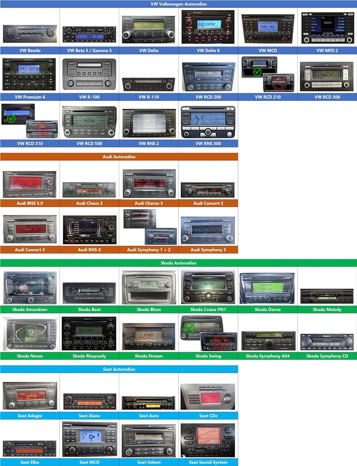 - VIELSEITIGE ANWENDUNG - Kompatibel mit allen Autoradios von VW, Audi, Skoda und Seat bis 2010. Details siehe Beschreibung. Bedienung über die Tasten des Radios oder Multifunktionslenkrads.