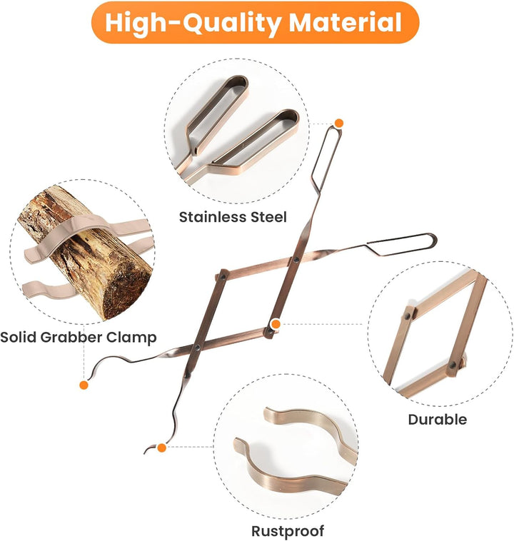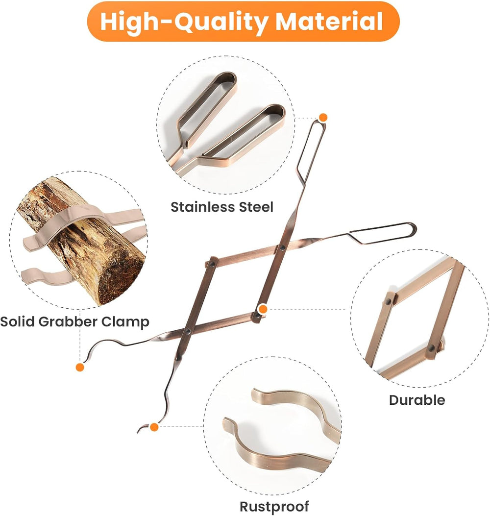 - 【Einfach zu klemmen】Das einzigartige geschwungene End-Design ermöglicht es der gesamten Kaminklemme, den Holzblock perfekter und einfacher zu klemmen. Der dickere Griff erleichtert es beiden Händen, den Griff zu halten und Brennholz zu verwalten