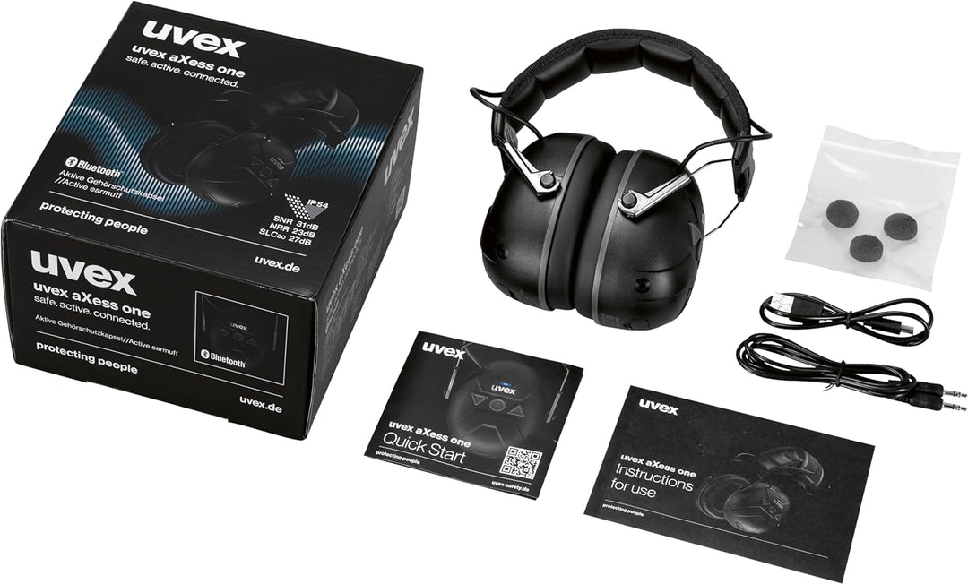 - Aktiver Bluetooth 5.2 Kapselgehörschutz mit gepolstertem, faltbarem Kopfband aus Textil. Eine passende Tasche (Artikel 2000002) kann extra erworben werden!