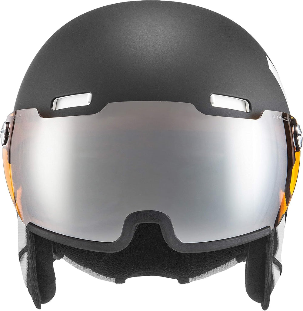 PRODUKTBESCHREIBUNGEN PRODUKTBESCHREIBUNG Der Hartschalen-Visierhelm Uvex HLMT 500 visor chrome LTD aus der Uvex iconic Kollektion ist ein echter Hingucker. Die Uvex chrome Beschichtung hat eine lange Tradition, ist in dieser Form einzigartig und wurde bereits 2001 im Alpinen Skiweltcup eingesetzt, um die Uvex Produkte optisch von der Masse abzuheben. Designliebhaber und extrovertierte Skifahrer ziehen mit dem verspiegelten und progressiv geformten Visier alle Blicke auf sich. Es verspricht dank einem extra-weiten Sichtfeld auch auf engen Pisten besten Überblick. Ganz einfach lässt es sich mit einer Hand öffnen und schliessen. Vorgeformte Polster an der Unterseite des Visiers passen sich der Gesichtskontur von der Nase bis zu den Ohren ideal an. Das verspricht vor allem Zugfreiheit und erhöht den Tragekomfort, da nichts drückt oder kneift. Neben der Weite lässt sich der Uvex HLMT 500 visor dank IAS-3D-System exakt an die individuelle Kopfhöhe anpassen. Die bewährte Uvex supravision-Beschichtung verhindert auch bei widrigen Wetterbedingungen zuverlässig Beschlagen des sphärischen Visiers und verleiht jederzeit Durchblick. Besonderheiten: Hartschalen-Konstruktion, IAS-3D-Grössenverstellsystem, aktives Belüftungssystem, lasergold lite Visier mit Antifog-Beschichtung. MARKENBESCHREIBUNG Spitzenathlet oder Freizeitsportler. Wettkampf oder einfach so. Als einer der führenden internationalen Hersteller von Schutzprodukten mit Sitz in Fürth begeistert uvex mit wegweisenden Technologien und innovativen Produkten. Rund um die Uhr – seit mehr als 90 Jahren. Um das Beste für jeden Einzelnen herauszuholen. In der Freizeit, beim Sport oder im Beruf. Zum Schutz des Menschen.