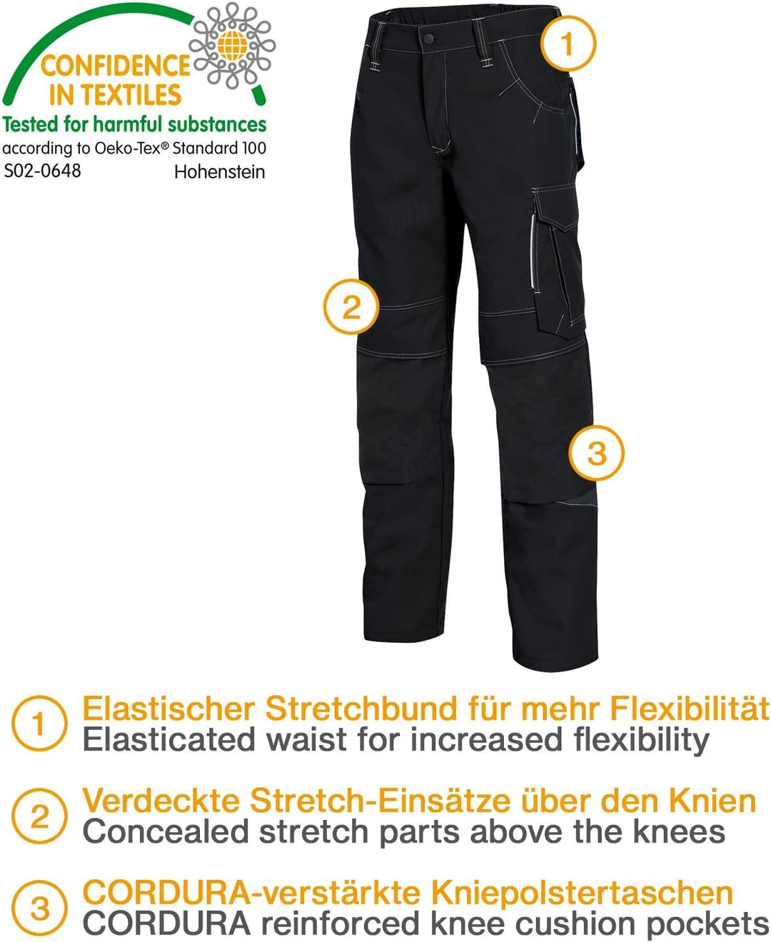 Uvex New Worker Arbeitshose - Schwarze Bundhose mit Kniepolstertaschen - Gr 58