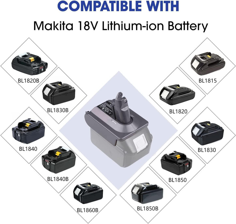 - [Einfach zu installieren und zu entfernen: Setzen Sie einfach den V6-Akkuadapter in den V6-Akkusauger ein und schieben Sie den Makita 18-V-Lithium-Ionen-Akku hinein. Zum Aufladen des Akkus muss der Akku normalerweise nur herausgenommen werden, ohne dass
