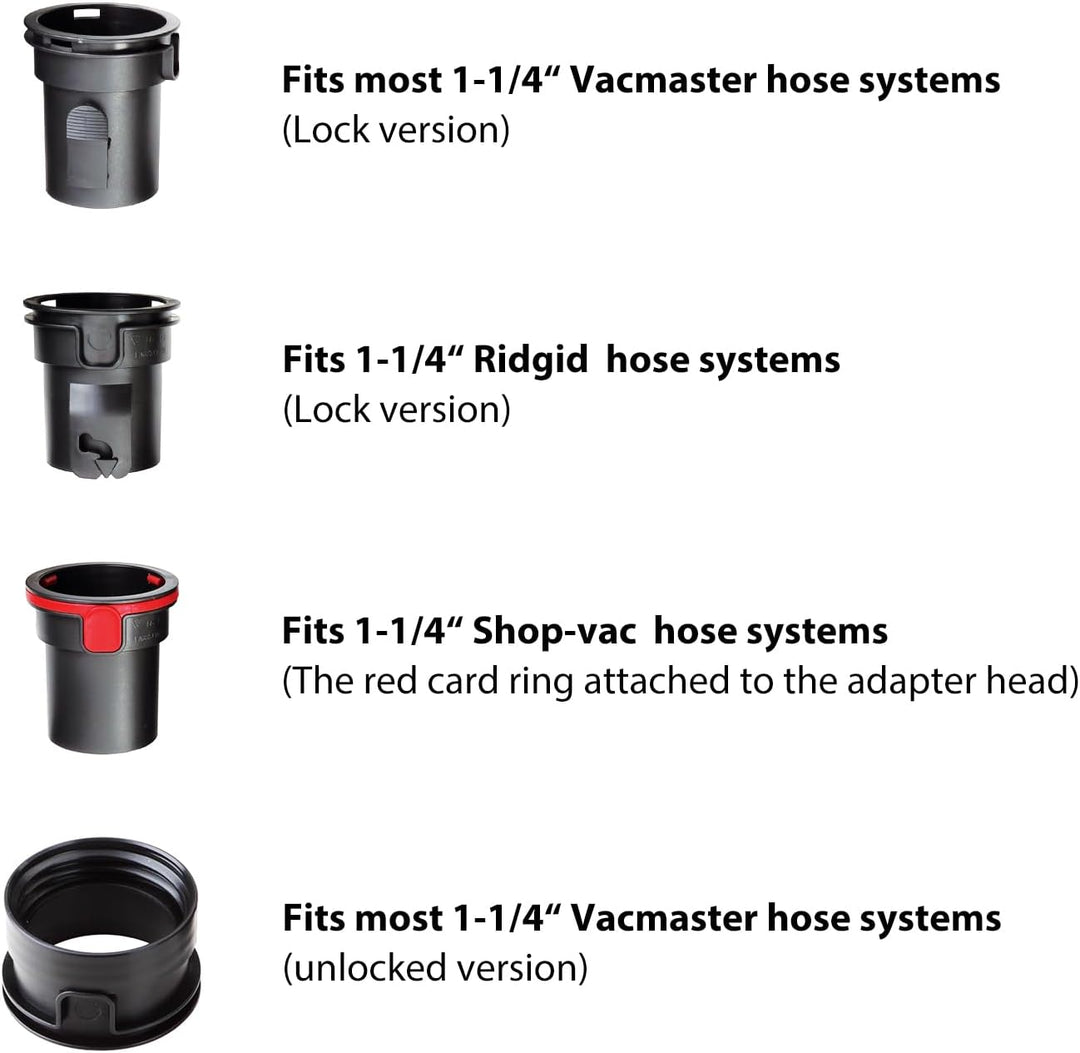 - Passend für die meisten 1-1/4 Zoll Vacmaster Schlauchsysteme. Ohne Schlauchsysteme mit Reibung