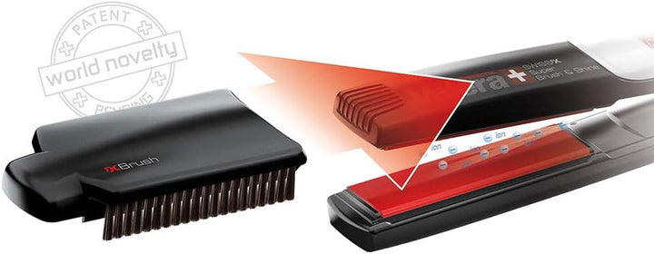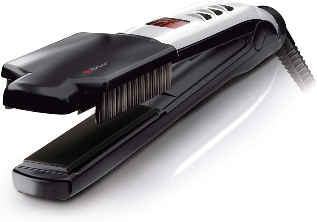 - Mit einer Hand in einem Durchzug Haare entwirren und perfekt glätten: Profi-Glätteisen mit Naturborsten-Aufsatz