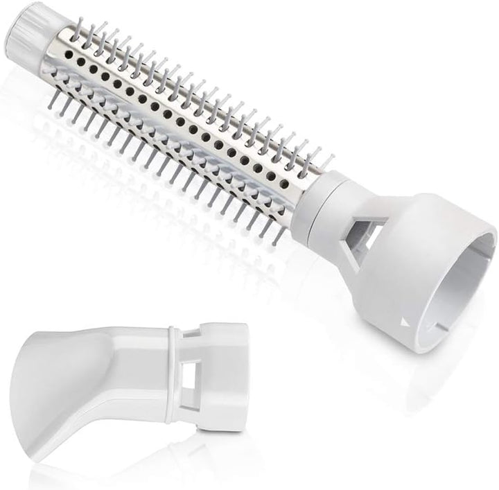 - Drei Zubehörteile: Thermo-Bürste mit einziehbaren Kämmen für Wellen und Locken ohne Verheddern (Durchmesser 22 mm), Thermo-Bürste mit Massage-Borsten für Volumen und Glanz (Durchmesser 25 mm), Frisierdüse zum einfachen Föhnen