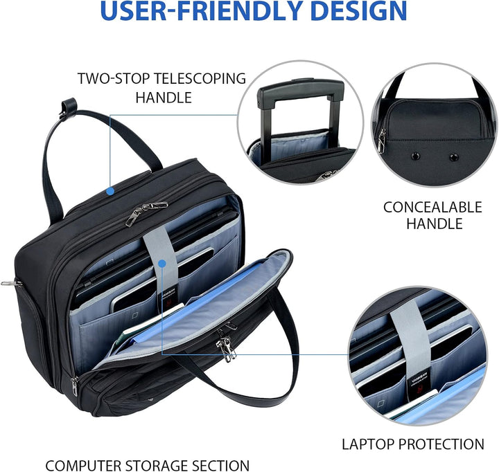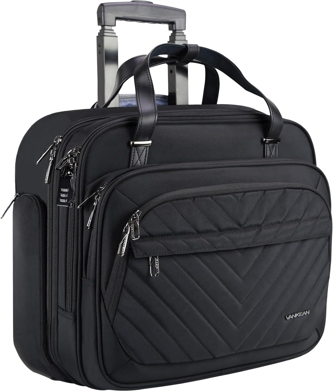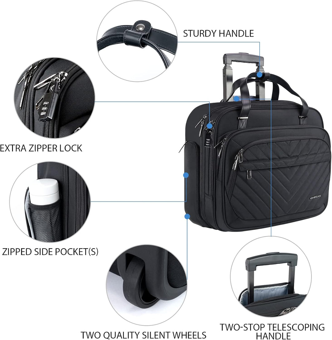 - MULTI-FUNCTIONAL COMPARTMENT: VANKEAN rolling laptop briefcase has 2 main roomy compartments that provide separate space for your 15.6” Laptop and all your items. The padded laptop compartment offers perfect protection for your laptop. The front pocket