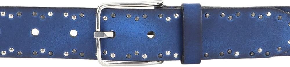 PRODUKTBESCHREIBUNGEN Vanzetti Gürtel mit schicken Nieten Daten Gürtel: o Grösse: Weite ca. 71 cm - ca. 84 cm (W80) o Masse: Breite ca. 3,5 cm, Stärke 0,2 cm o Gewicht: ca. 95 g o Farbe: Jeans (blau) o Material: 100% Leder o Lieferumfang: Vanzetti Gürtel mit Etikett Ausstattung Gürtel: o Gürtel wird mit Dornschliesse geschlossen o 6 gestochene Löcher o Das Vanzetti Logo ist gut sichtbar eingearbeitet Vanzetti Denim Love 35mm Full Leather Belt W80 - Der modische Gürtel für rockige Outfits Mit Leichtigkeit und stilvollen und zugleich modischem Nieten-Design präsentiert sich dieser praktische Vanzetti Gürtel. Der schicke Begleiter überzeugt nicht nur durch seinen zuverlässigen Halt, sondern er dient zugleich als stylisches Accessoire, welches Ihren Outfits das gewisse Etwas schenkt. Um die Hüfte getragen, verleiht der Vanzetti Denim Love 35mm Full Leather Belt W80 Ihrem Look den letzten Schliff.