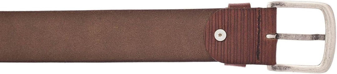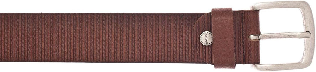 PRODUKTBESCHREIBUNGEN Vanzetti Gürtel aus echtem Leder Daten Gürtel: o Grösse kürzbar: Weite ca. 75 cm - ca. 87,5 cm (W80) o Masse: Breite ca. 4 cm, Stärke 0,5 cm o Gewicht: ca. 170 g o Farbe: Cognac (Braun) o Material: 100% Leder o Lieferumfang: Vanzetti Gürtel mit Etikett Ausstattung Gürtel: o Gürtel wird mit Dornschliesse geschlossen o 6 gestochene Löcher o Das Vanzetti Logo ist gut sichtbar eingearbeitet Vanzetti 40mm Leather Belt W80 - Der schicke Gürtel in Streifen Optik Dieser schicke und modische Vanzetti Gürtel ist nicht nur ein praktischer Alltagshelfer, sondern auch ein vielseitig kombinierbares Accessoire, um Ihren Outfits das gewisse Etwas zu verleihen. Mit seiner Streifen Optik überzeugt der Gürtel bereits auf den ersten Blick und beeindruckt jeden. Die Gürtelweite lässt sich mit nur wenigen Handgriffen an Ihre Körpermasse anpassen. Ansonsten ist der schicke Vanzetti 40mm Leather Belt W80 kürzbar und passt so wirklich wie massgeschneidert. Dieses Schmuckstück wartet hier auf Sie! Mehr