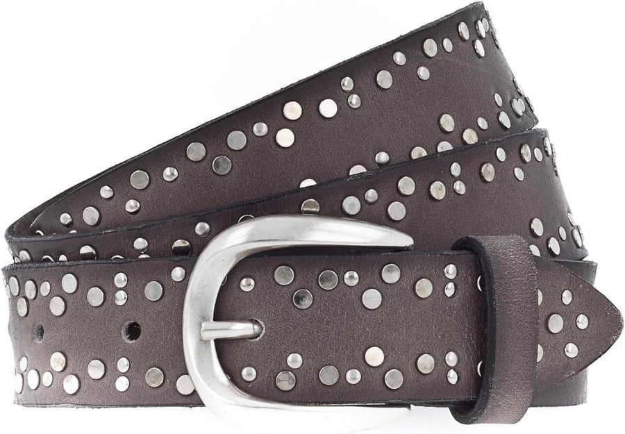 PRODUKTBESCHREIBUNGEN Vanzetti Gürtel mit schicken Nieten Daten Gürtel: o Grösse: Weite ca. 96,5 cm - ca. 109 cm (W105) o Masse: Breite ca. 3,0 cm, Stärke 0,3 cm o Gewicht: ca. 128 g o Farbe: Taupe (Braun) o Material: 100% Leder o Lieferumfang: Vanzetti Gürtel mit Etikett Ausstattung Gürtel: o Gürtel wird mit Dornschliesse geschlossen o 6 gestochene Löcher o Das Vanzetti Logo ist gut sichtbar eingearbeitet Vanzetti Denim Love 30mm Full Leather Belt W105 - Der modische Gürtel für rockige Outfits Mit Leichtigkeit und stilvollen und zugleich modischem Nieten-Design präsentiert sich dieser praktische Vanzetti Gürtel. Der schicke Begleiter überzeugt nicht nur durch seinen zuverlässigen Halt, sondern er dient zugleich als stylisches Accessoire, welches Ihren Outfits das gewisse Etwas schenkt. Entscheiden auch Sie sich für einen modischen und zugleich stylischen Look mit dem neuen Vanzetti Denim Love 30mm Full Leather Belt W105.