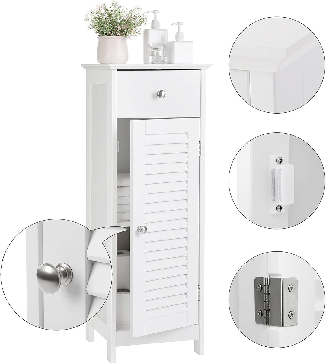 VASAGLE Badezimmerschrank, Badschrank schmal, Aufbewahrungsschrank, kleiner Schrank, mit Schublade,