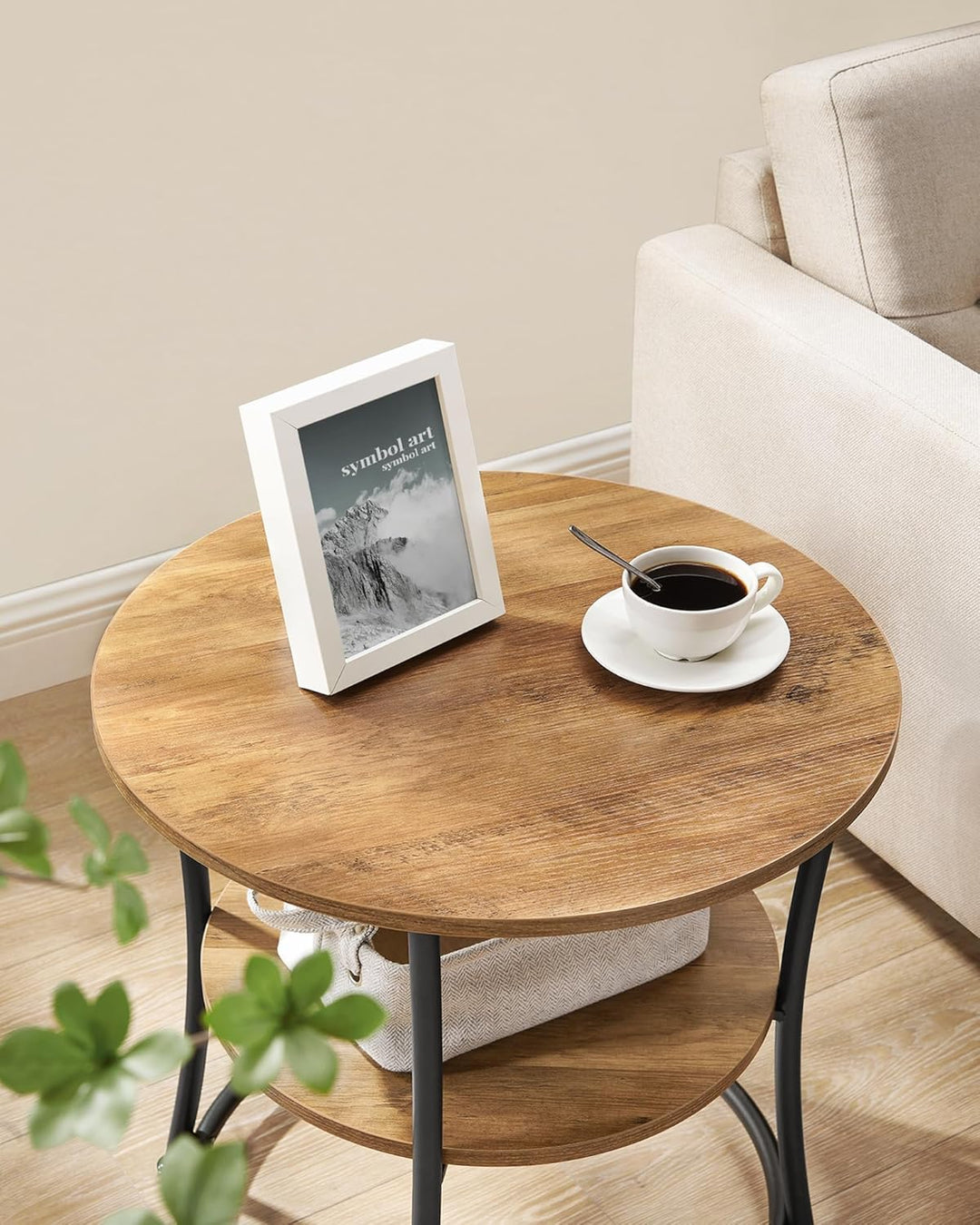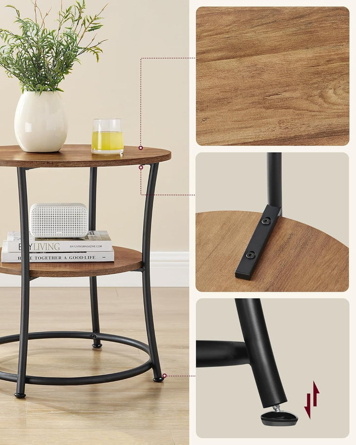 - [Was Sie bekommen] Einen runden Beistelltisch mit 2 Ebenen, der dank der verstellbaren Füsse auch auf leicht unebenen Böden stabil steht und sich dank einer bebilderten Anleitung einfach aufbauen lässt