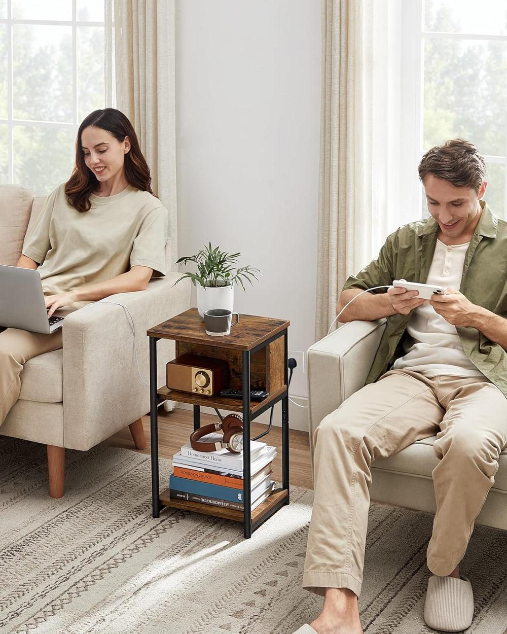 - [Beistelltisch mit Steckdose] Dieser Beistelltisch verfügt über eine integrierte Steckdose mit 2 AC-Anschlüssen, 2 USB-Anschlüssen und einem 2 m langen Ladekabel, mit dem Sie Ihre Geräte mit Strom versorgen können, ohne Ihren Sitzplatz zu verlassen