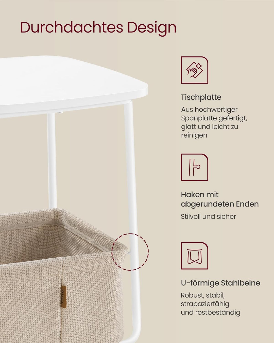 - 【HOCHWERTIGER KORB】Der Korb besteht aus glattem, doppellagigem Polyestergewebe und sieht schön aus. Zudem hat er keine chemische Beschichtung und sorgt für eine sichere Nutzung. Dank der Leinenoptik verleiht er diesem kleinen Tisch eine