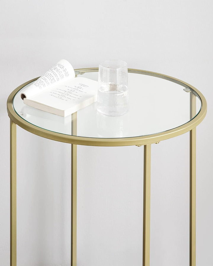 - Wirkt zart, ist aber hart: Die Oberfläche dieses Beistelltisches besteht aus 6 mm dickem Hartglas. Dieses ist besonders robust und stossunempfindlich. Die stabile Glasplatte ist mit bis zu 40 kg belastbar