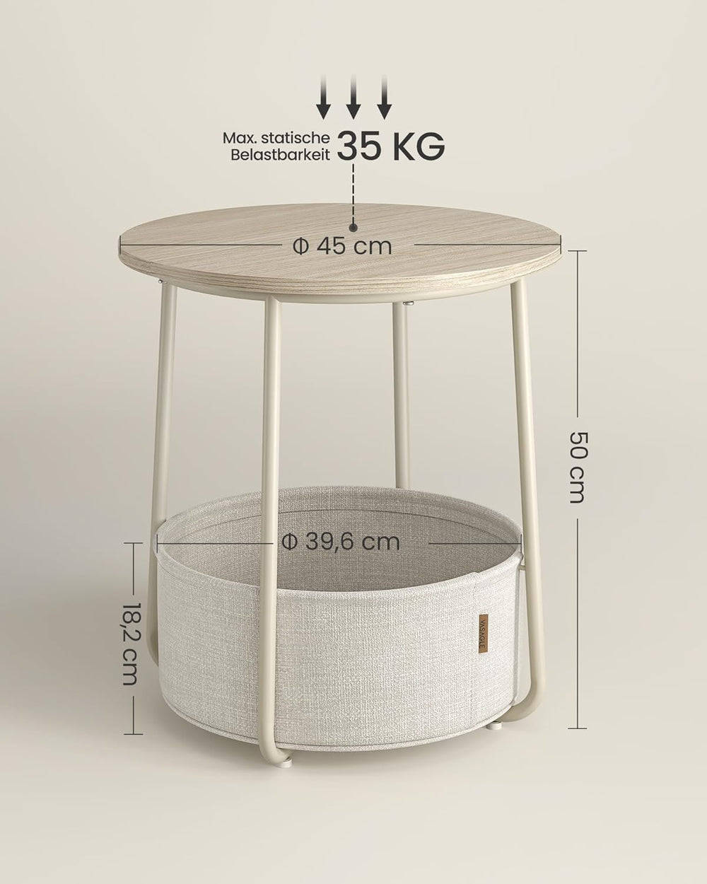 - [Für kleine Räume geeignet] Der 45 x 50 cm (Ø x H) Sofatisch hat einen 39,6 x 18,2 cm (Ø x H) Korb und ist für kleine Räume geeignet. Als Beistelltisch im Wohnzimmer oder Nachttisch im Schlafzimmer nimmt er wenig Platz ein und bietet dennoch viel