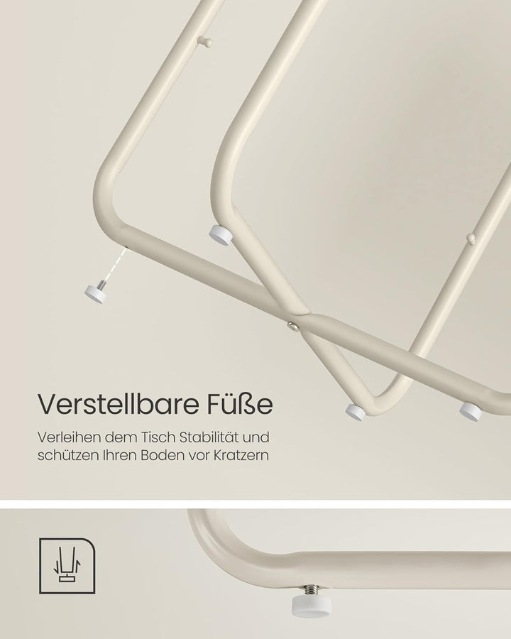 - [Robust & stabil] Die robuste Spanplatte lässt sich fest und wackelfrei am Gestell befestigen. Die in einem Stück gefertigten U-Beine aus Stahl sorgen für starken Halt. Die verstellbaren Füsse erhöhen die Stabilität und schützen Ihren Boden vor