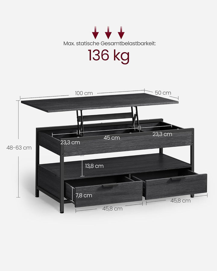 - [Lift-Top Design] Die Tischplattenhöhe lässt sich von 48 cm bis 63 cm verstellen, wodurch Sie beim Entspannen auf Ihrer Couch die ideale Position zum Arbeiten, Essen oder Spielen finden können. Maximieren Sie Ihren Komfort mit diesem Couchtisch!