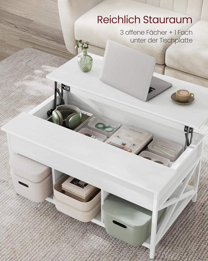 VASAGLE Couchtisch, höhenverstellbarer Wohnzimmertisch, Kaffeetisch, offener und versteckter Staurau