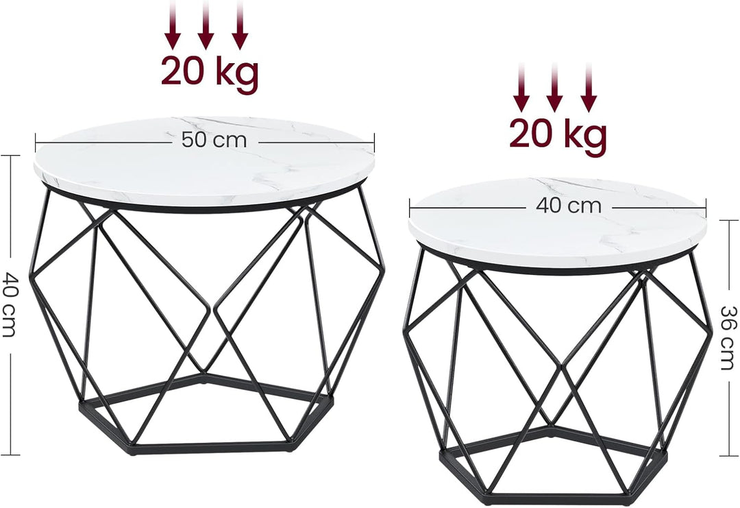 - [Praktische Grösse] Die Grösse des grossen Beistelltisches ist 50 x 40 cm (Ø x H) und des kleinen Tisches ist 40 x 36 cm (Ø x H), perfekt geeignet für kleine Räume. Nachmittagstee, Dekorationen oder Laptop, alles findet hier seinen Platz