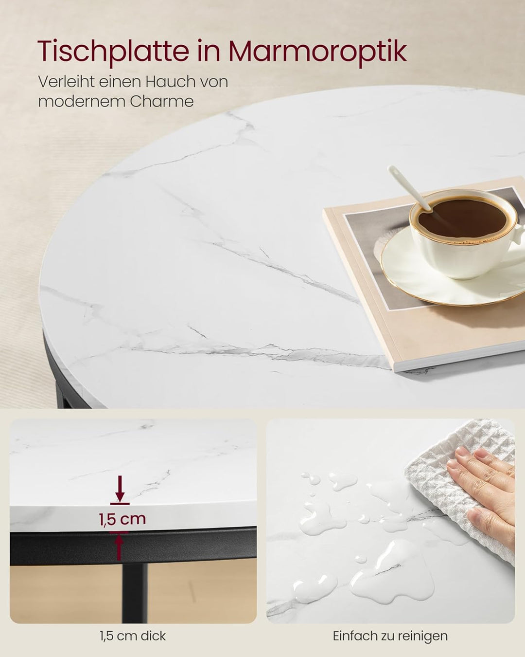 - [Was Sie bekommen] Einen modernen Couchtisch, der Sie über viele Jahre hinweg begleiten wird, mit einer Tischplatte in Marmoroptik und einer Ablage aus Hartglas unten, sowie einer klaren Anleitung für eine einfache Montage