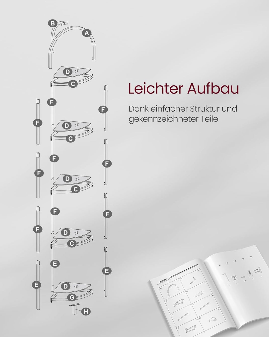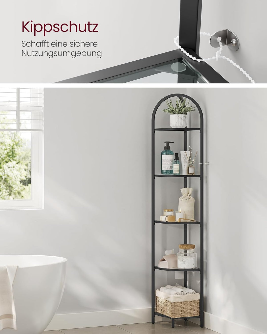 - [Platzsparend] Nutzen Sie Ihre Ecken optimal mit diesem 5-stufigen Standregal. Masse: 28 x 28 x 158 cm (T x B x H), Abstand zwischen den Ablagen: 30 cm – dieses Regal bietet reichlich Stauraum für verschiedene Gegenstände und spart gleichzeitig Platz