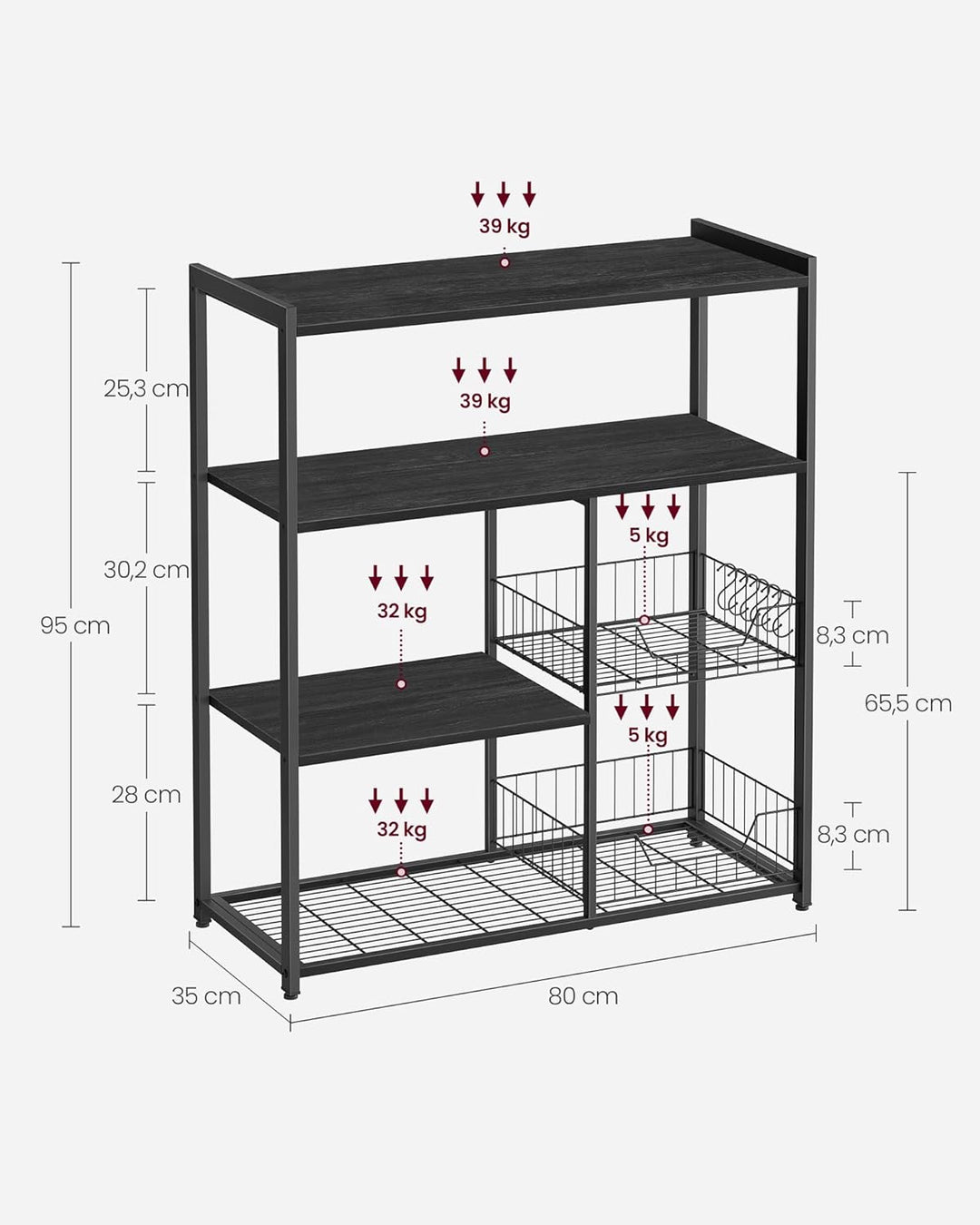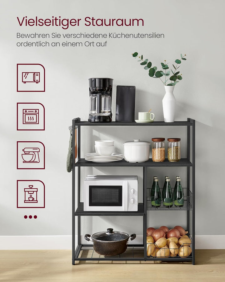 - 【REICHLICH STAURAUM】Sie dürfen alle Elektrogeräte behalten! Dank der 35 cm tiefen Regalebenen, die in ausreichenden Abständen voneinander angebracht sind, finden Sie auf diesem Bäckerregal endlich einen gemeinsamen Platz für Toaster, Mikrowelle