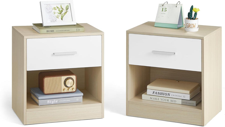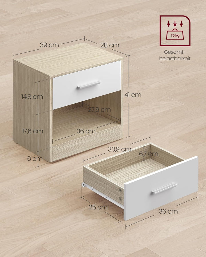 - [Robust & stabil] Eine starke Holzspanplatte, hochwertige Beschläge und eine robuste Struktur verleihen diesem Beistelltisch hohe Stabilität. Die Gesamtbelastbarkeit pro Tisch beträgt 75 kg und jede Schublade trägt bis zu 5 kg