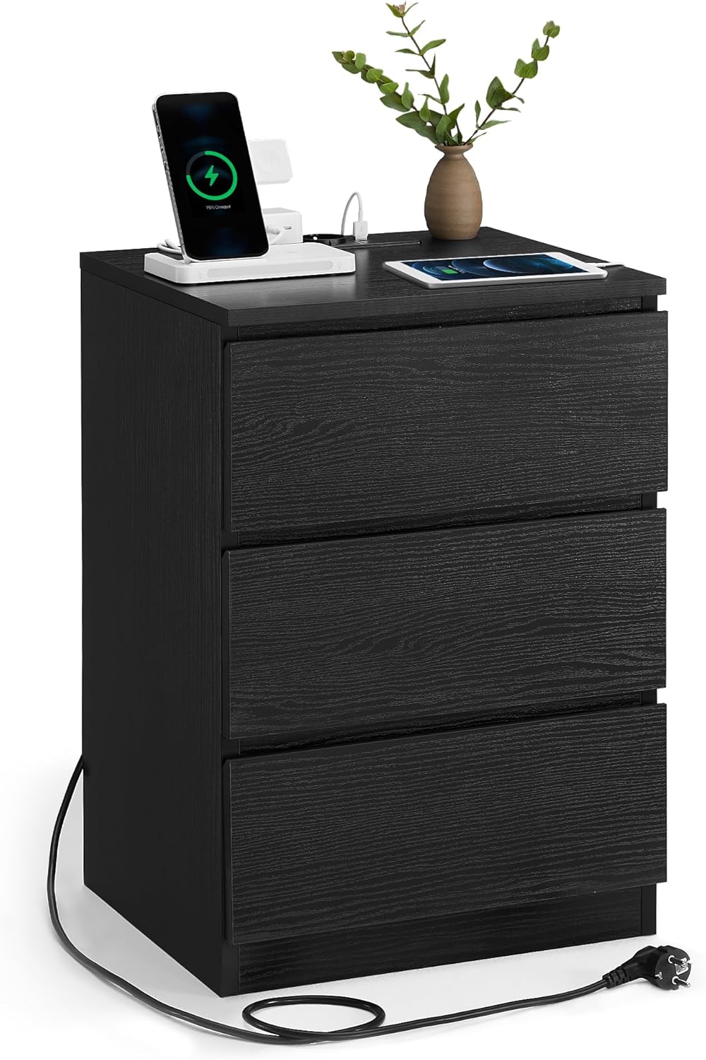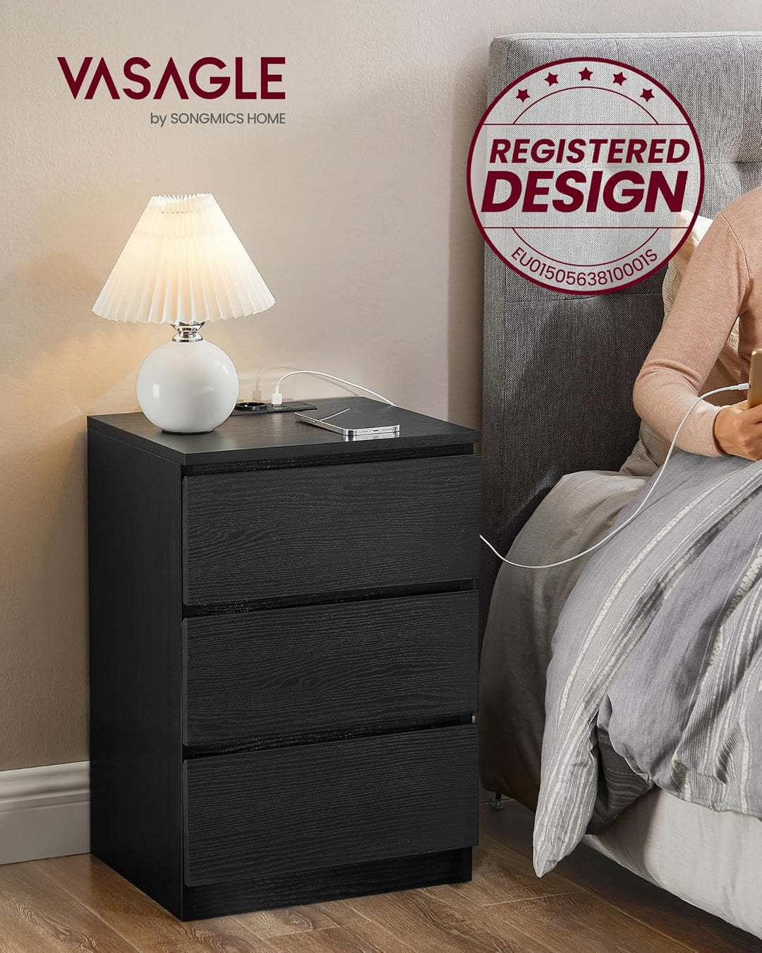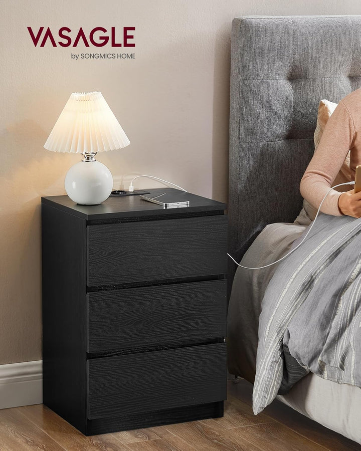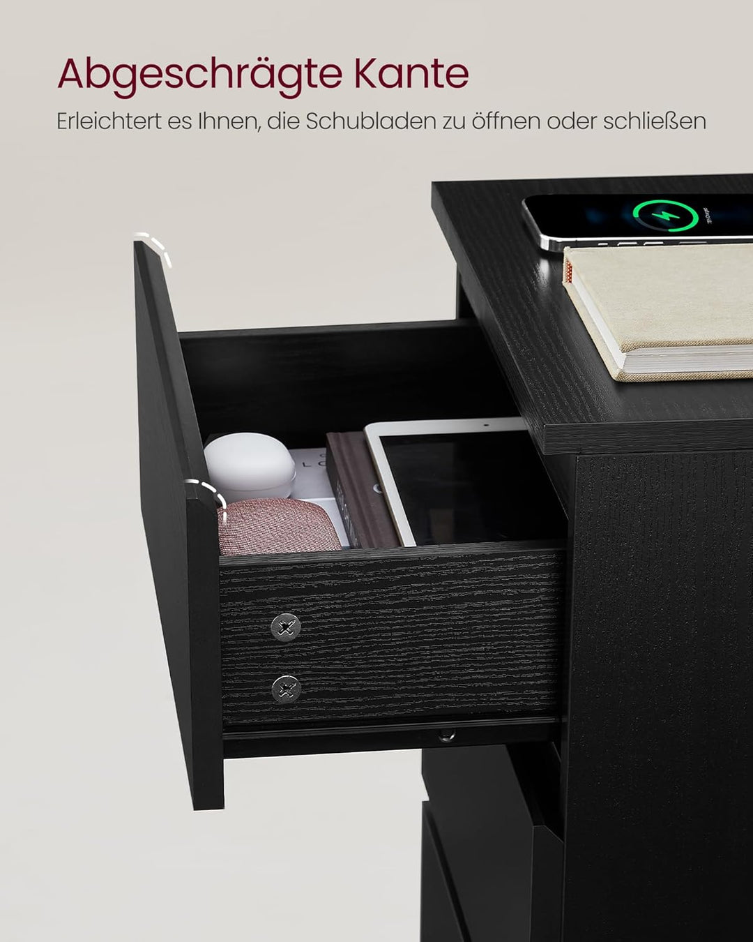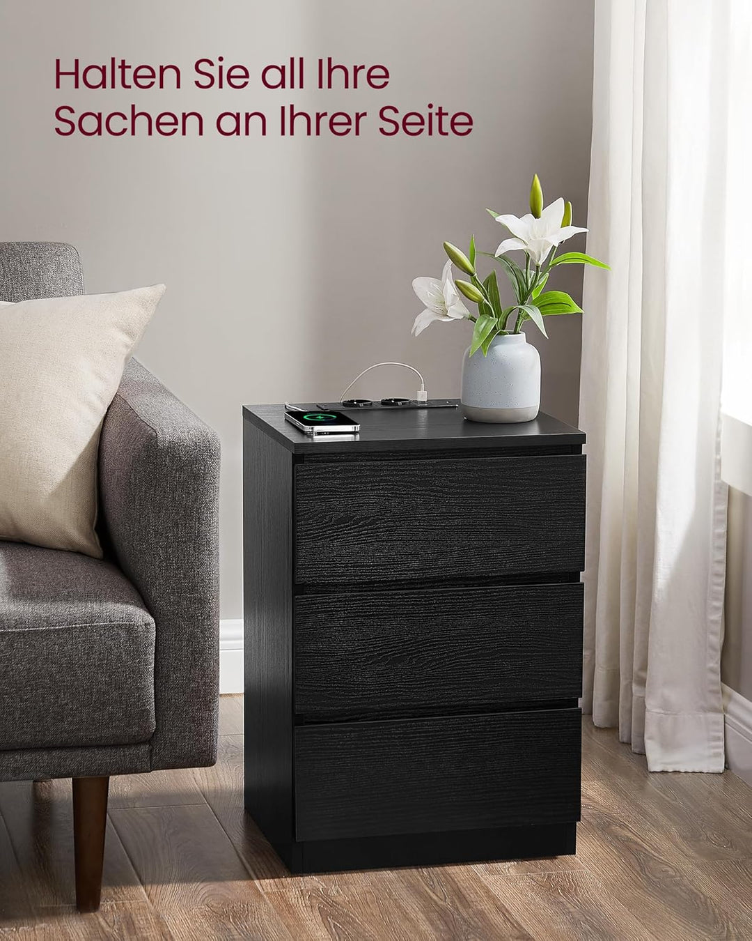 - [Viel Stauraum] Ob Sie Ihre Bettlektüre verstecken oder Ihre Brille griffbereit aufbewahren möchten, dieser Nachttisch bietet Ihnen mit seiner geräumigen Tischplatte und 3 leicht zu öffnenden Schubladen mit abgeschrägten Kanten genügend Platz