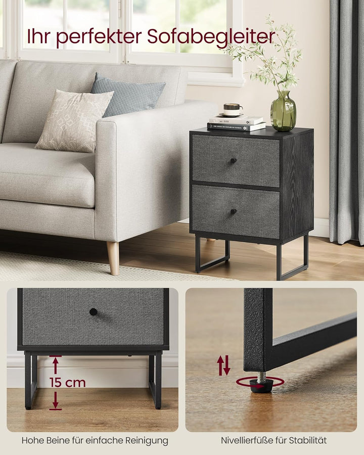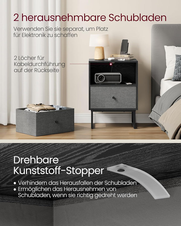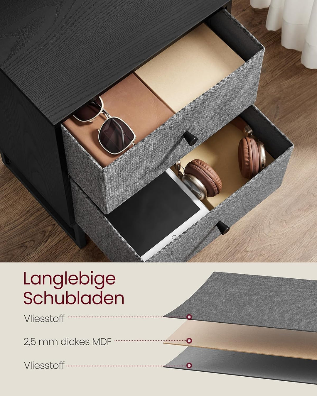 - [Viel Stauraum] Mit einer geräumigen Tischoberfläche und 2 Stoff-Schubladen bietet dieser Nachttisch praktischen Platz für Lampen, Getränke und Bücher oder Kleinigkeiten wie Fernbedienungen, wodurch Sie Ihren Raum aufgeräumt und organisiert halten