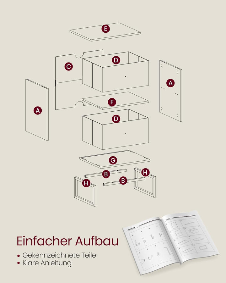 - [Einfacher Zusammenbau] Der Zusammenbau dieses Nachtschranks ist ein echtes Kinderspiel! Dank der leicht verständlichen Anleitung und der gekennzeichneten Teile ist er im Handumdrehen aufgebaut und einsatzbereit