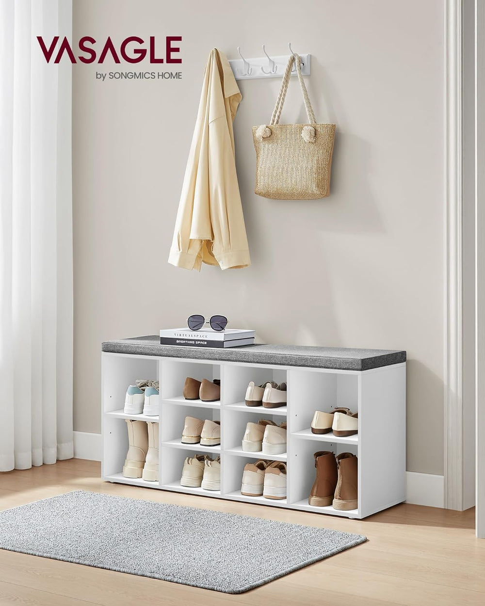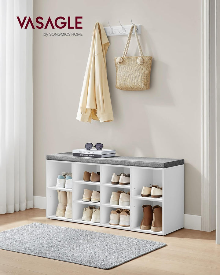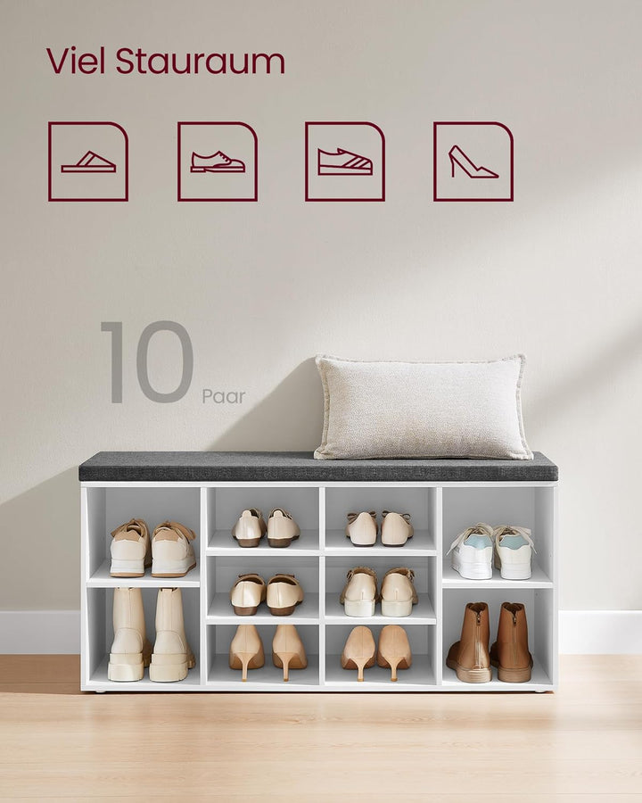 - [Was Sie bekommen] Eine doppelt talentierte Schuhbank mit weicher, komfortabler Sitzfläche und tiefen Fächern. Verstauen Sie Ihre Schuhe in diesem Schuhregal und bringen Sie Ihren Flur auf Vordermann!