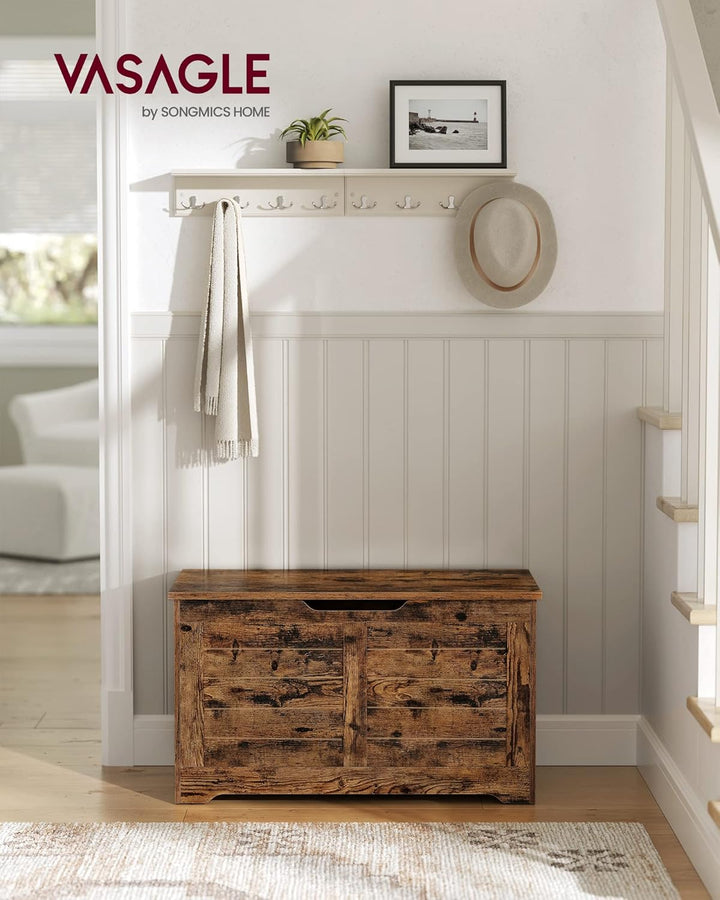- [Hohe Belastbarkeit] Die Oberfläche ist bis 136 kg und das Fach bis 60 kg belastbar, so dass Sie sich entspannt auf die Bank setzen und die Schuhe wechseln können, während Sie in dem versteckten Fach der Sitztruhe jede Menge Gegenstände verstauen