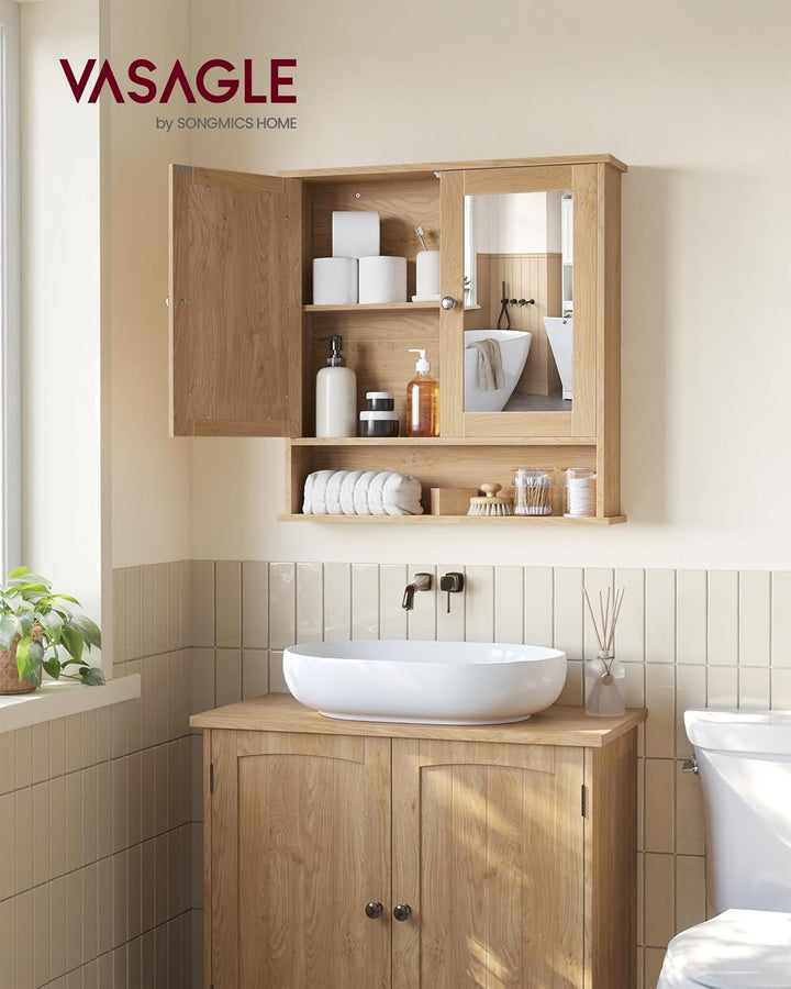 - [Praktische Spiegeltüren] Dieser Badezimmerschrank verfügt über 2 Spiegeltüren, sodass Sie sich morgens einfach rasieren oder schminken können. Beginnen Sie jeden Tag mit einem wunderschönen Aussehen!