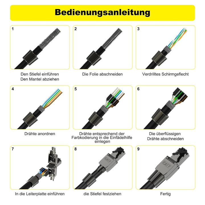 - Verpackung und Kundendienst: 4 Stück rj45 stecker cat 7 werkzeuglos, 1x Bedienungsanleitung, 18 Monate Qualitätsgarantie, 24 Stunden Kundenservice. Rechnungen inklusive Mehrwertsteuer sind erhältlich. Bei Qualitätsproblemen können Sie eine volle