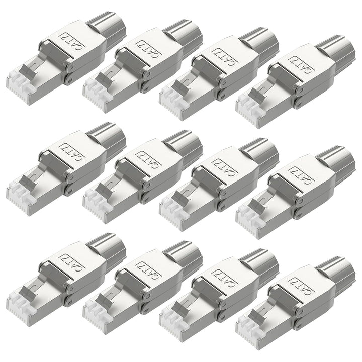 - Paket und Kundendienst: 12 Stück Lan Kable Stecker Cat7 Werkzeuglos, 18 Monate Qualitätsgarantie. Unsere Stecker eignen sich hervorragend für die professionelle Verkabelung von Arbeitsplätzen und Servern in Bürogebäuden, Rechenzentren und