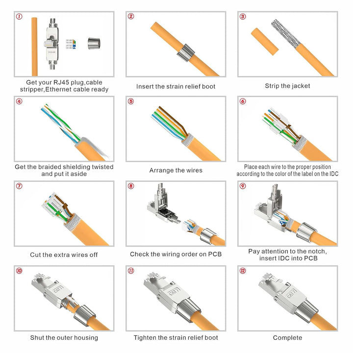 - Feldkonfektionierbarer CAT.7 RJ45 verlegekabel stecker: Beim Verschliessen des Gehäuses werden die Adern automatisch auf eine LSA-Modul gedrückt. Die Vorgang kann ganz leicht innerhalb 2 Minuten ohne Crimpwerkzeug im Feld beendet werden. Die