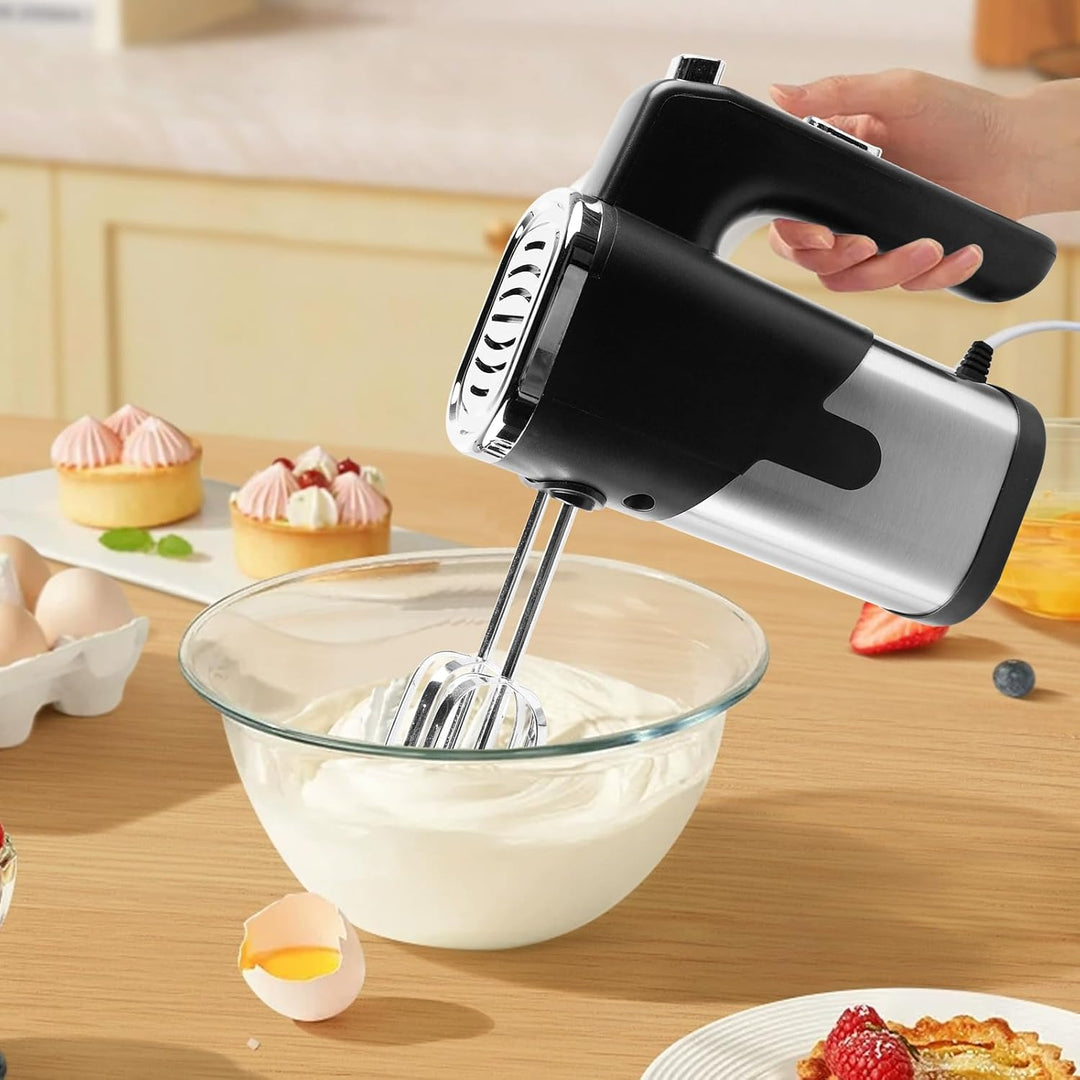 - 【5 Geschwindigkeiten】Der elektrische Handmixer kann die Mischgeschwindigkeit frei von Stufe 1 auf Stufe 5 umschalten, um allen Rezeptanforderungen gerecht zu werden. Zusätzliche Turbinenstufen ermöglichen das Erreichen der Höchstgeschwindigkeit in