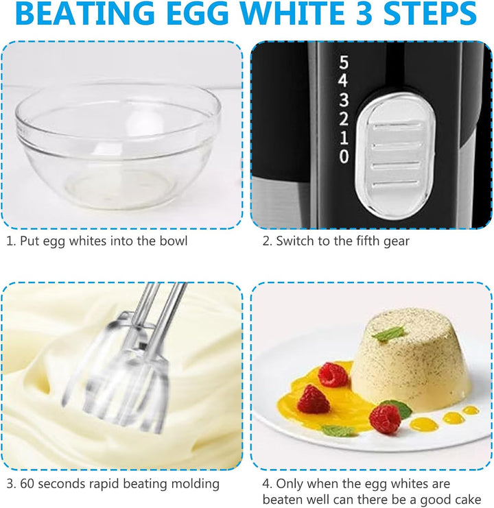 - 【Multifunktionales Zubehör】 Mixer-Handmixer inklusive 2 Rührbesen, 2 Knethaken und Schneebesen. Geeignet für Teig, Eier, Babynahrung, Marmelade usw. Zutaten einfach und effizient mischen.