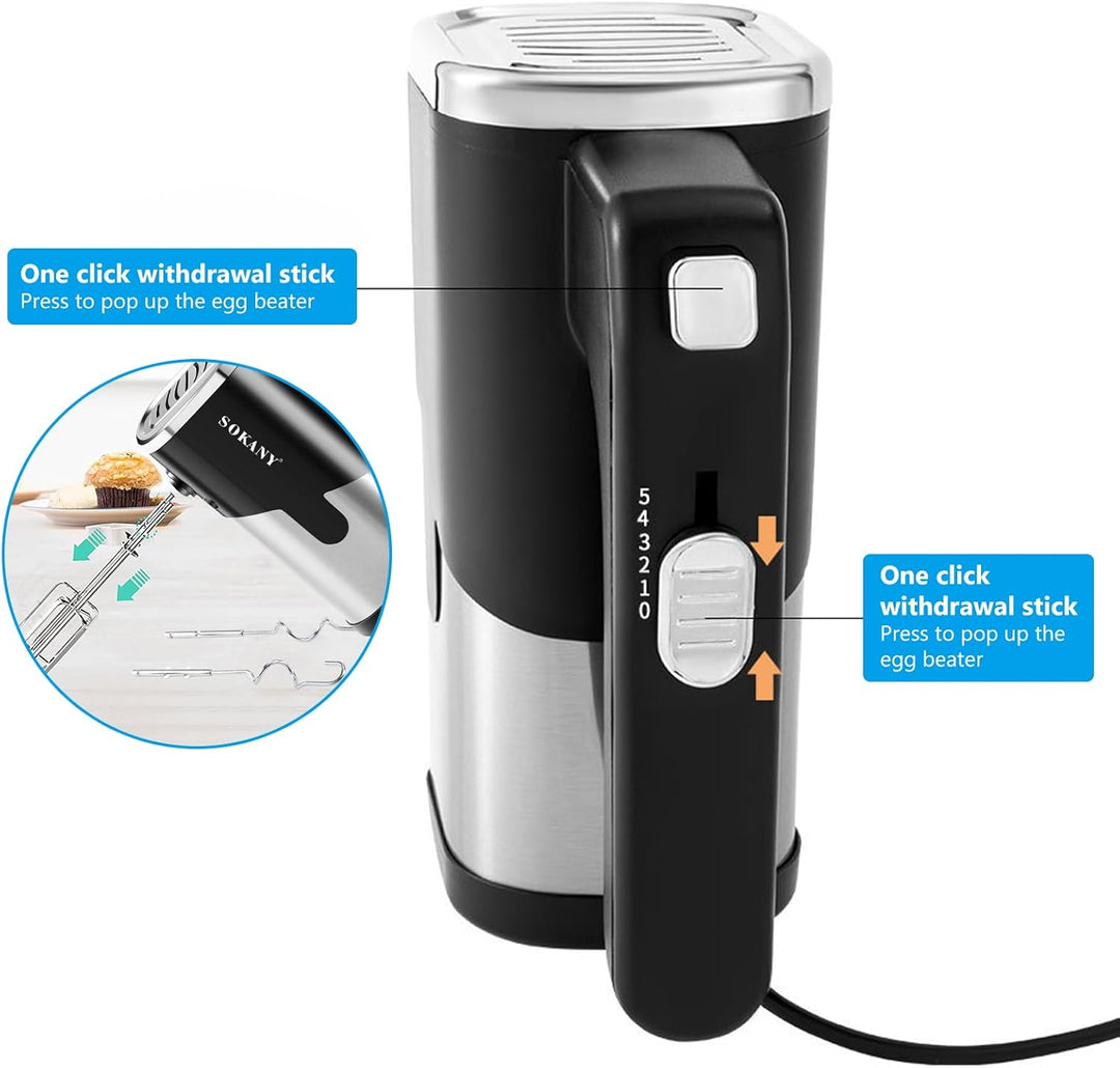 - 【Mit Exit-Taste】 Der Handmixer verfügt über eine Exit-Taste und der Mixstab springt heraus, sodass der Knethaken und der Mixer leicht ausgetauscht werden können. Es ist sehr bequem zu verwenden.