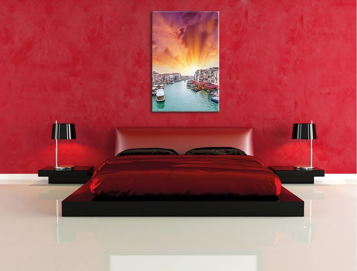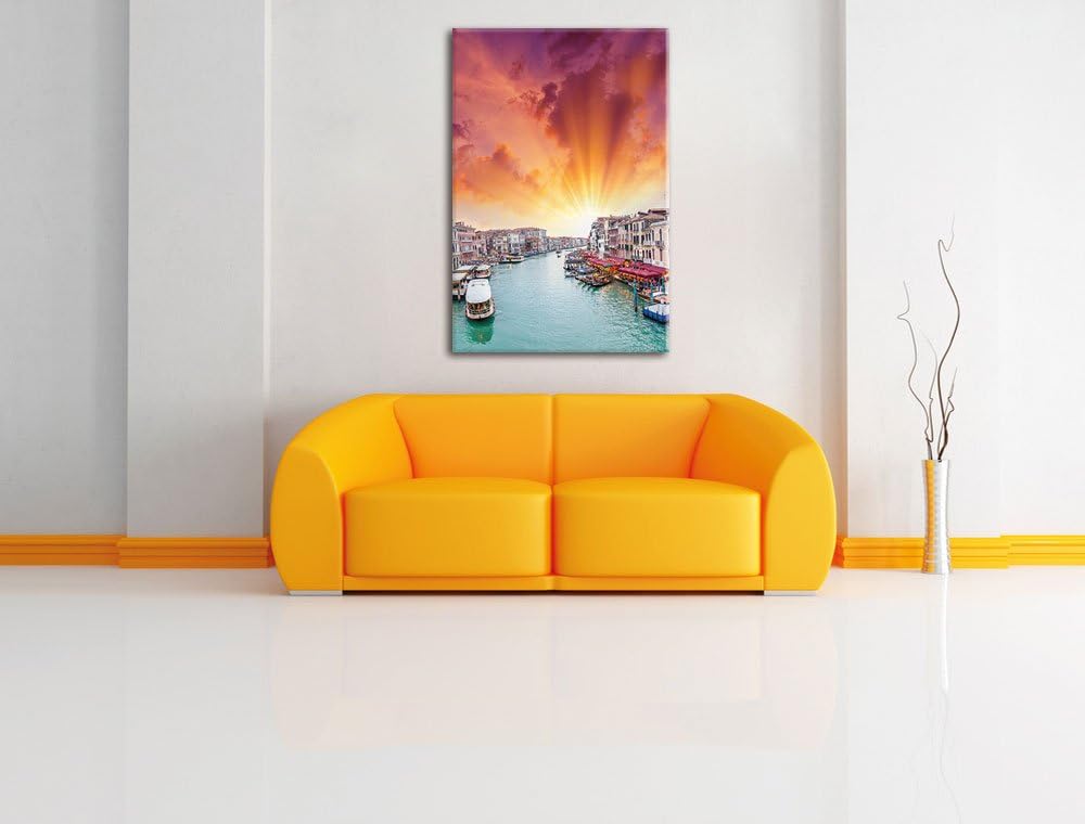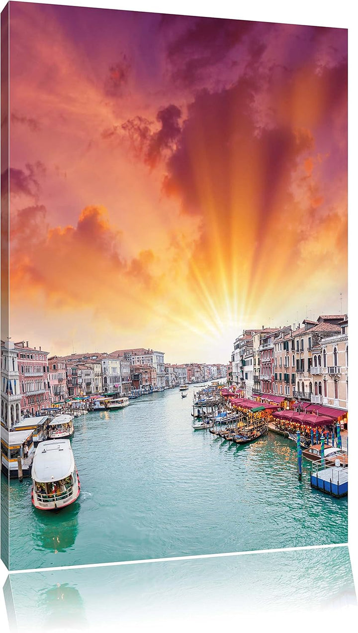 Venedig Fluss Häuser, Format: 100x70 auf Leinwand, XXL riesige Bilder fertig gerahmt mit Keilrahmen,