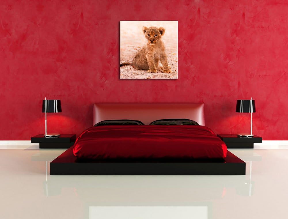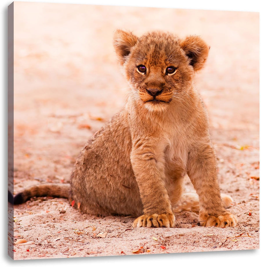 Verlassenes Löwenbaby, Format: 70x70 auf Leinwand, XXL riesige Bilder fertig gerahmt mit Keilrahmen,