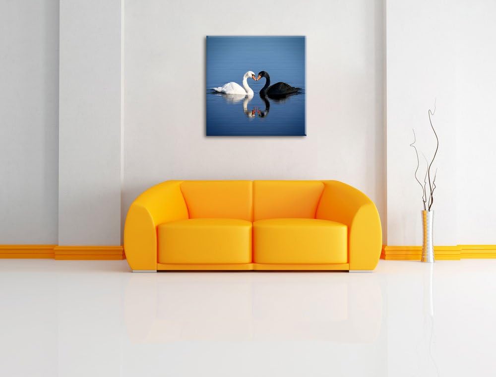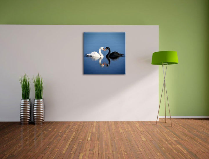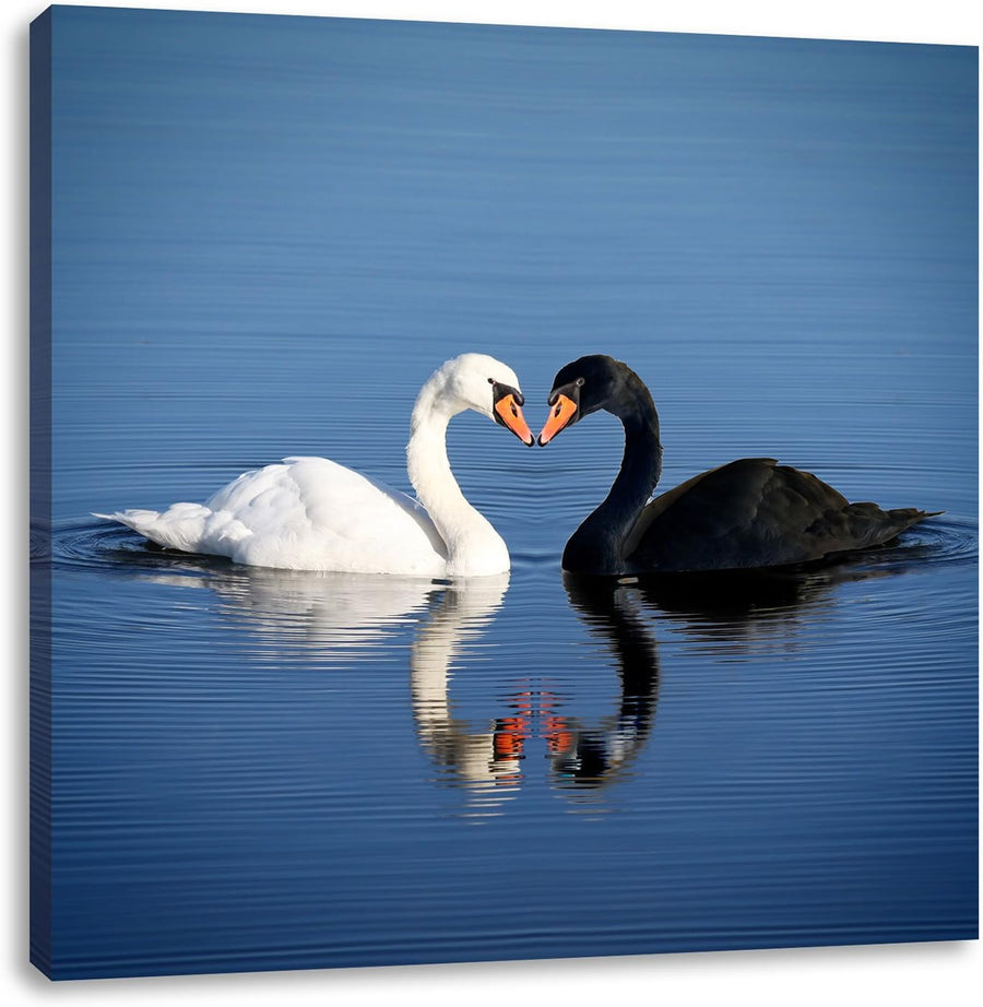 verliebte Schwäne schmusen, Format: 70x70 auf Leinwand, XXL riesige Bilder fertig gerahmt mit Keilra
