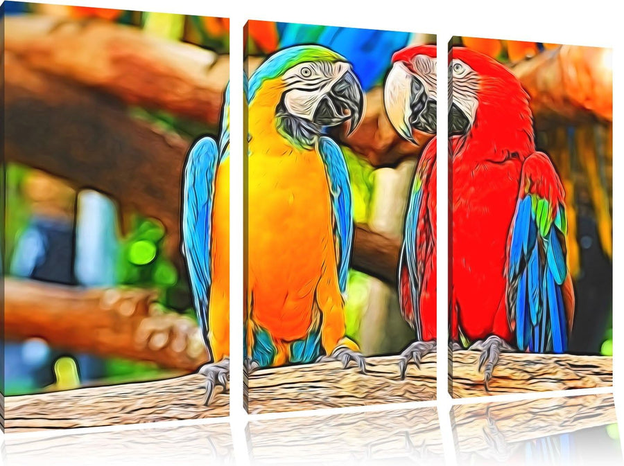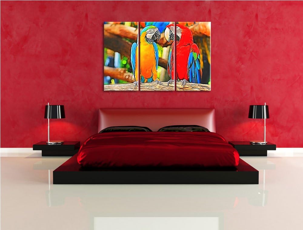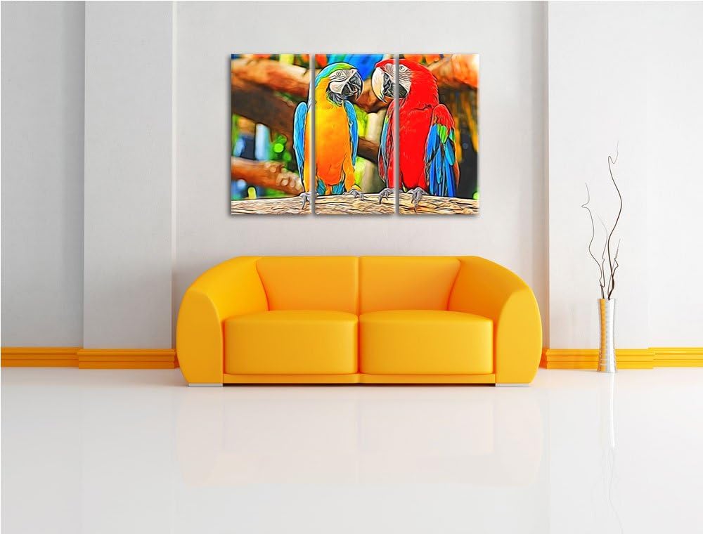 Verliebtes Papageienpärchen3-Teiler Leinwandbild 120x80 Bild auf Leinwand, XXL riesige Bilder fertig